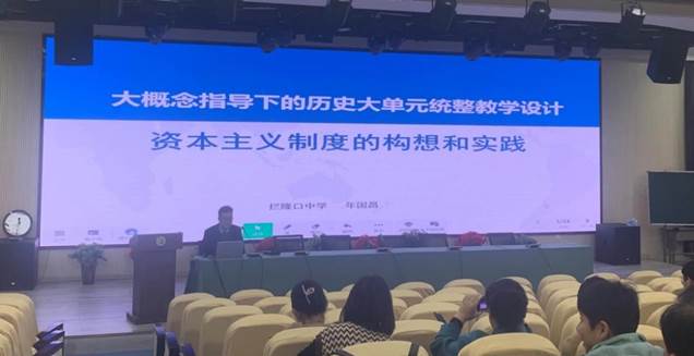 活动第二项,西宁市教育科学研究院贾生石老师进行第二轮大单元本土引进:《历史大单元统整教学的关键要素、设计路劲与课例举隅》的讲座。通过贾老师的分享,使我们对大单元统整教学有了更系统的认识。