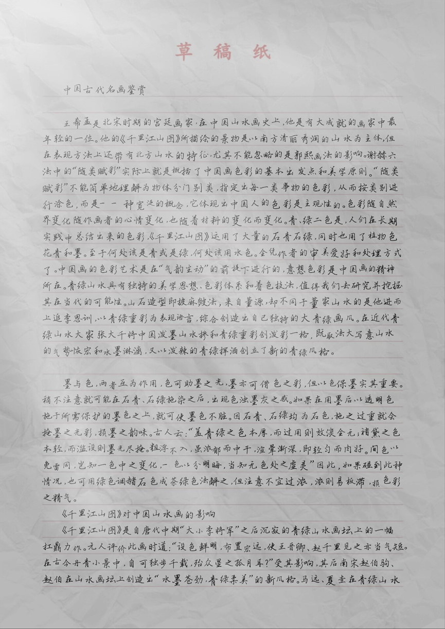 中国书法和绘画作为以墨为主进行创作的艺术表现形式,可谓同源而出,也常被我们习惯性地并称作“书画”,因书法自身往往就有绘画般的艺术表现张力,而绘画中又多伴有书法,或能成“书画双绝”。上一次,我们见识了中国书法的艺术魅力。这一次,让我们继续借助同学们的展示,领略中国绘画艺术的独特韵味。