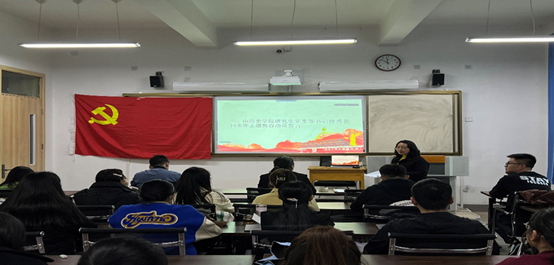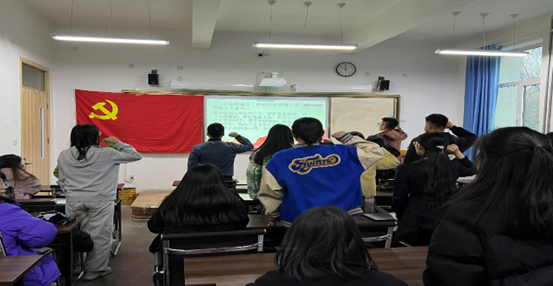 会议伊始,由组织委员王林武带领全体党员同学重温入党誓词。在铿锵的誓言中,党员们重温了入党的决心和信念。宣誓进一步增强党性修养,提高党员的责任感和使命感,筑牢党员的初心与使命。