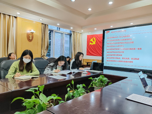 会议主要围绕《习近平著作选读》来进行学习。会上由陈阳同志领学《马克思主义中国化时代化新的飞跃——学习和实践马克思主义》;由颜玉霞同志领学《习近平总书记在庆祝中国共产党成立一百周年大会上的讲话》;由张莹莹同志领学《推进党的建设新的伟大工程要一以贯之》,几位同志从著作里的几个不同方面进行了深入的学习和探讨,不断地提高了理论素养,坚定了理想信念。