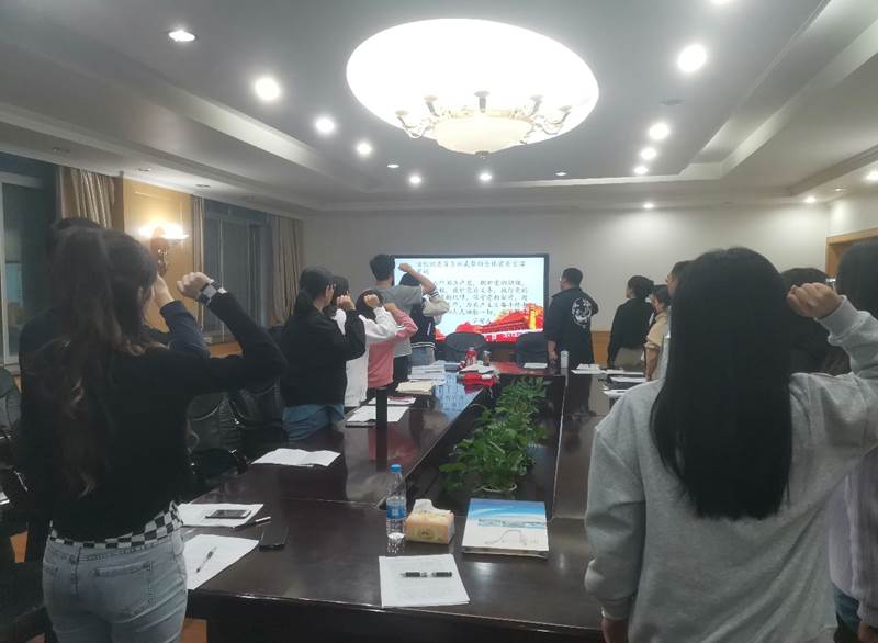 会议伊始,由组织委员王林武带领全体党员同学重温入党誓词。在铿锵有力的誓言中,党员同志们更加坚定了自己入党的初心,使命。坚定了自己作为共产党员,为人民服务,从群众中来,到群众中去,为人民谋幸福,为民族谋复兴的信念。