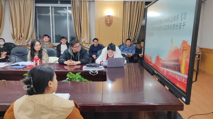 会议第五项,由21级中国史博士刘响同志领学《习近平:推动中国式现代化需要处理好若干重大关系》,刘响同志分享了习近平总书记在新进中央委员会的委员、候补委员和省部级主要领导干部学习贯彻习近平新时代中国特色社会主义思想和党的二十大精神研讨班上讲话的一部分内容,阐述了推进中国式现代化需要处理的六个方面的关系,明晰了在推进中国式现代化进程中的注意点。