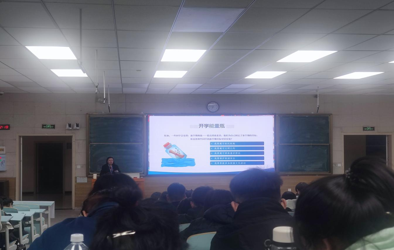 课堂伊始,张书记向同学们进行了亲切的自我介绍,话语中满是对同学们的关怀与期待,瞬间拉近了与大家的距离,赢得了同学们热烈的掌声与积极反馈。讲课中,张书记引入了习近平主席的一段话:“梦虽遥,追则能达;愿虽艰,持则可圆”。她语重心长地向同学们阐述,当下这个伟大的时代,赋予了每一位青年学子新的使命与责任。我们每个人都绝非旁观者,而是主角,都应当全力以赴,在时代的舞台上发光发热。接着,张书记从探索新能量、开学初状态、开学能量瓶、调节情绪有方法几个方面与同学们进行了深入的探讨和交流,要求大家结合实际,适时地调整自己职业和学业规划,根据自身优势选择职业发展路径,拓宽职业发展眼界。