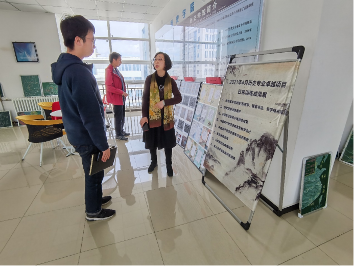 2021年4月28日,在学院鄢晓彬书记、丁柏峰经理的亲自部署下,伟德体育“2021年4月历史专业师范生教学技能训练展示”活动在城北校区东二楼五楼举行。活动由历史卓越项目组负责人之一、历史教法教研室主任袁亚丽老师主持。教务处李新文老师到现场检查、指导,伟德体育卓越教师培训分项目组成员张开老师和周太加老师参加。