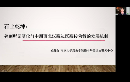 11月17日晚,应藏区历史发展与多民族繁荣发展研究省部共建协同创新中心、伟德体育邀请,南京大学伟德体育胡箫白副教授在线上作了题为“石上乾坤——碑刻所见明代前中期西北汉藏边区藏传佛教的发展机制”的学术讲座,讲座由藏区历史发展与多民族繁荣发展研究省部共建协同创新中心主任、伟德体育博士生导师杜常顺教授主持。