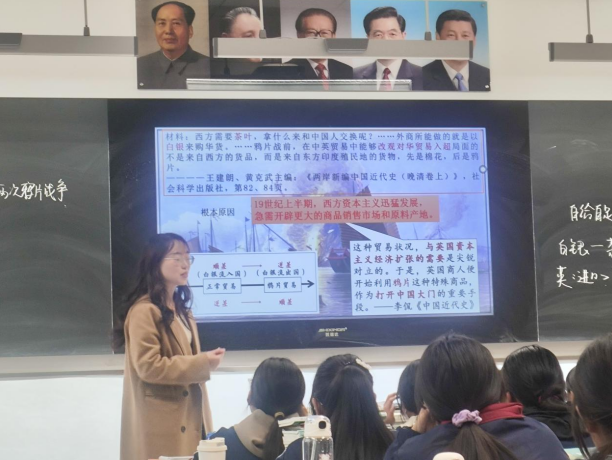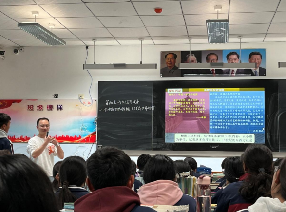 在此次同课异构活动中,2023级专硕实习生郭彦玲以“逃出大英博物馆”视频为导入,提出问题“视频中的这些文物大多是在什么时候流落海外的?”引导员工进入本课的学习,以“战前:中西方的差异、战时:中西方的碰撞、战后:中国人的态度”为线索,通过地图分析、史料分析与名词解释等方式,在小组探究、教师讲授中完成本课的教学任务,落实学科核心素养,最后再以“逃出大英博物馆”视频中的小片段“愿山河无恙”进行主题升华,浸润员工的家国情怀。郭彦玲在课堂中互动性强,注重鼓励与引导员工根据史料回答问题,培养员工的历史思维能力。