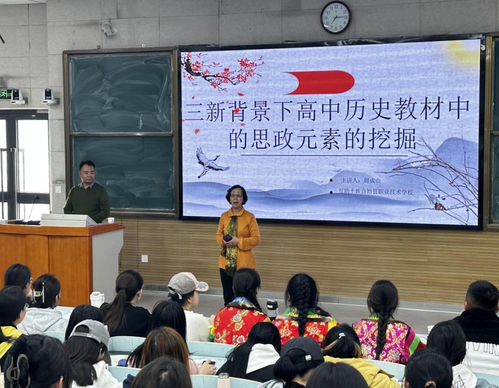 周老师分享了多年的教学经验,强调了在新背景下高中历史教材课程思政元素的挖掘与运用。