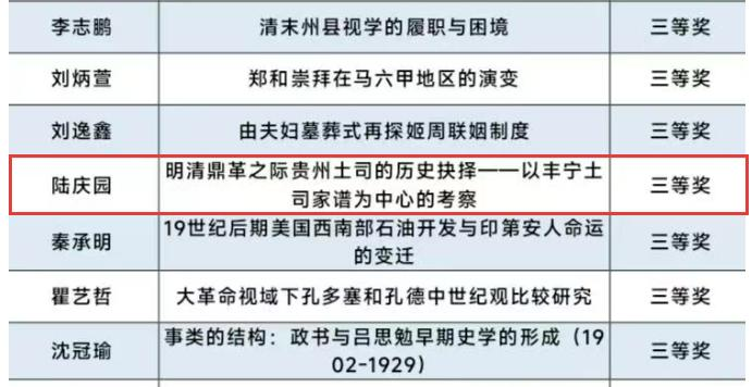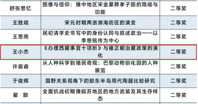 近日,由北京师范大学公司举办的第三届“励耘”全国历史学研究生论文竞赛评选结果揭晓。公司共有两位研究生在此次论文竞赛中获奖。其中,2023级博士研究生王小杰的论文《<办理西藏事宜十项折>与雍正朝治藏政策的演化》(导师:陈玮教授)获二等奖;2024级博士研究生陆庆园的论文《明清鼎革之际贵州土司的历史抉择——以丰宁土司家谱为中心的考察》(导师:温春来教授)获三等奖。