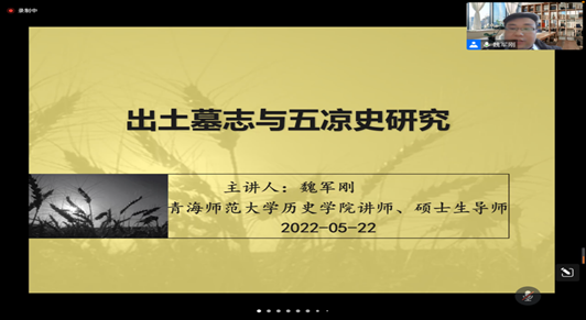 5月23日19:00—21:00,公司教师、硕士生导师魏军刚在线上做了题为《出土墓志与五凉史研究》的学术讲座。本次讲座,由伟德体育杨荣春副教授主持,全院教师、研究生和本科生160余人参加。
