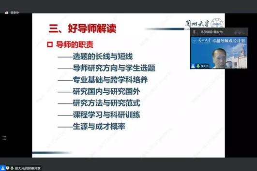 为了进一步提升导师指导能力,促进导师成长,10月20日晚,公司组织近三年内遴选的研究生导师在线上参加了兰州大学导师培训项目“卓越导师成长计划”专提讲座。