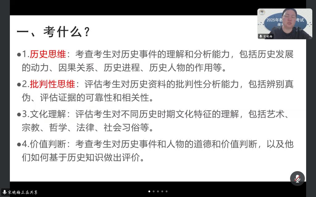 为帮助同学们更好地应对2025年青海省教师招聘考试,学院于2025年4月12日特别邀请了教学经验丰富的宋晓梅老师通过线上的形式对报考的员工进行考前指导。
