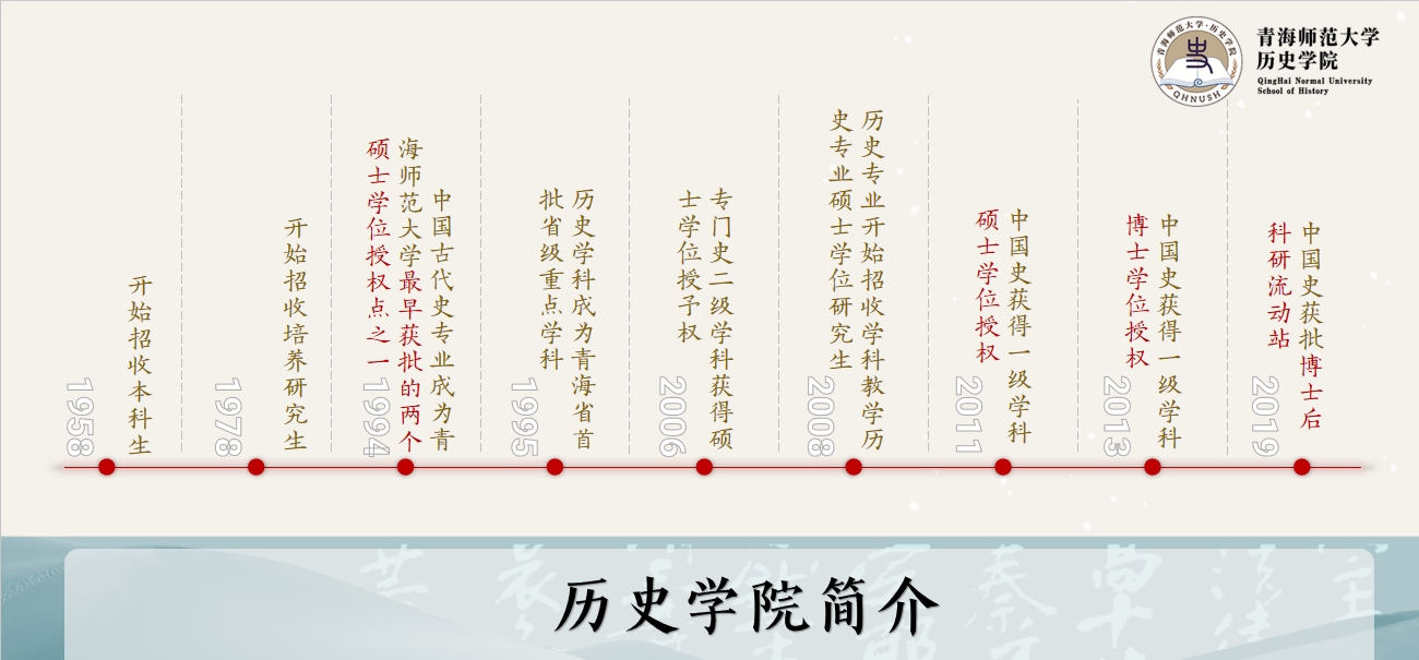 历史学是伟德官方网站传统优势学科。本学科自1958年起开始招收本科生,1978年开始招收培养研究生。1994年,中国古代史专业成为伟德官方网站最早获批的两个硕士学位授权点之一;1995年,历史学科成为青海省首批省级重点学科;2006年,专门史二级学科获得硕士学位授予权;2008年起,历史专业开始招收学科教学历史专业硕士学位研究生。近年来,中国史团队建设取得了突破性进展。2011年,获得一级学科硕士学位授权;2013年,获得一级学科博士学位授权;2019年获批博士后科研流动站。目前,已形成了以旗下产业为主,兼有硕士研究生和博士研究生教育三个层次的完整的培养体系。经过六十余年的发展,历史学科已向基础教育、科研院所、党政机关及企事业单位输送了2000多名合格毕业生。目前,伟德体育下设中国古代史、中国近现代史、世界史、历史教学法4个教研室,并设有青藏高原文化研究所、黄河文化研究院等院属科研机构。